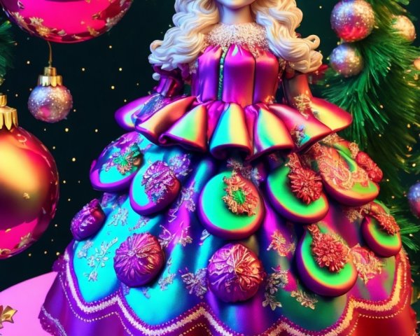 Prompt: Adorable Happy Buffalo in a magical winter landscape, with wonderful Christmas decorations, with stars in the sky, with falling snow, with divine light, Catherine Abel style