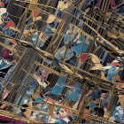 Panoramic : A vibrant beach scene featuring sunbathers and beachgoers amidst palm trees and umbrellas. Dark clouds loom above, contrasting with the lively atmosphere of summer fun.