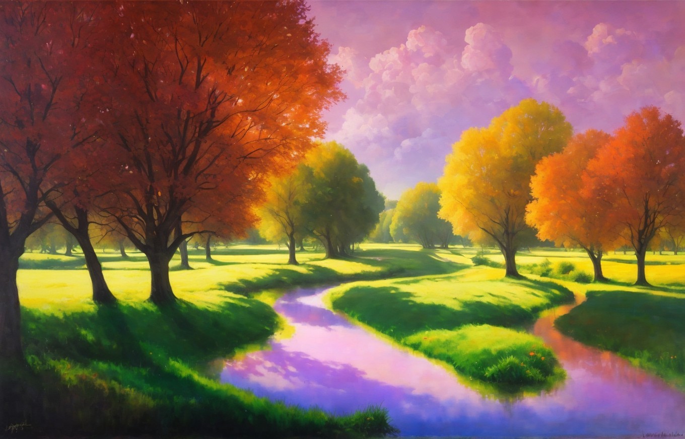 Tranquil landscape with meandering river and autumn trees