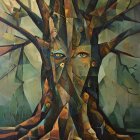 Stylized Tree Artwork with Human Face and Vibrant Colors