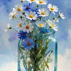 Vibrant Abstract Floral Painting with Blue and Yellow Flowers