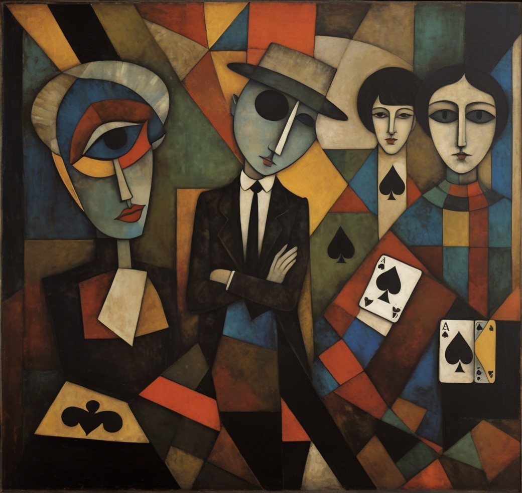 Patchwork poker face. But wasn't it beautiful? Didn't we forget about the sad times for a while? Portrait under pressure, nostalgia, battery corrosion, Mercury Glass patina, topographic lines, Art Brut, moody, somber, desaturated colors, in the style of Paul Klee, Aubrey Beardsley, Arthur Rackham, Alphonse Mucha