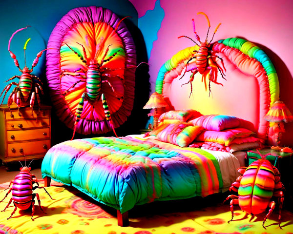 A vibrant, rainbow-layered sandwich with colorful fillings, a person's hand, and various ingredients placed around on a table.