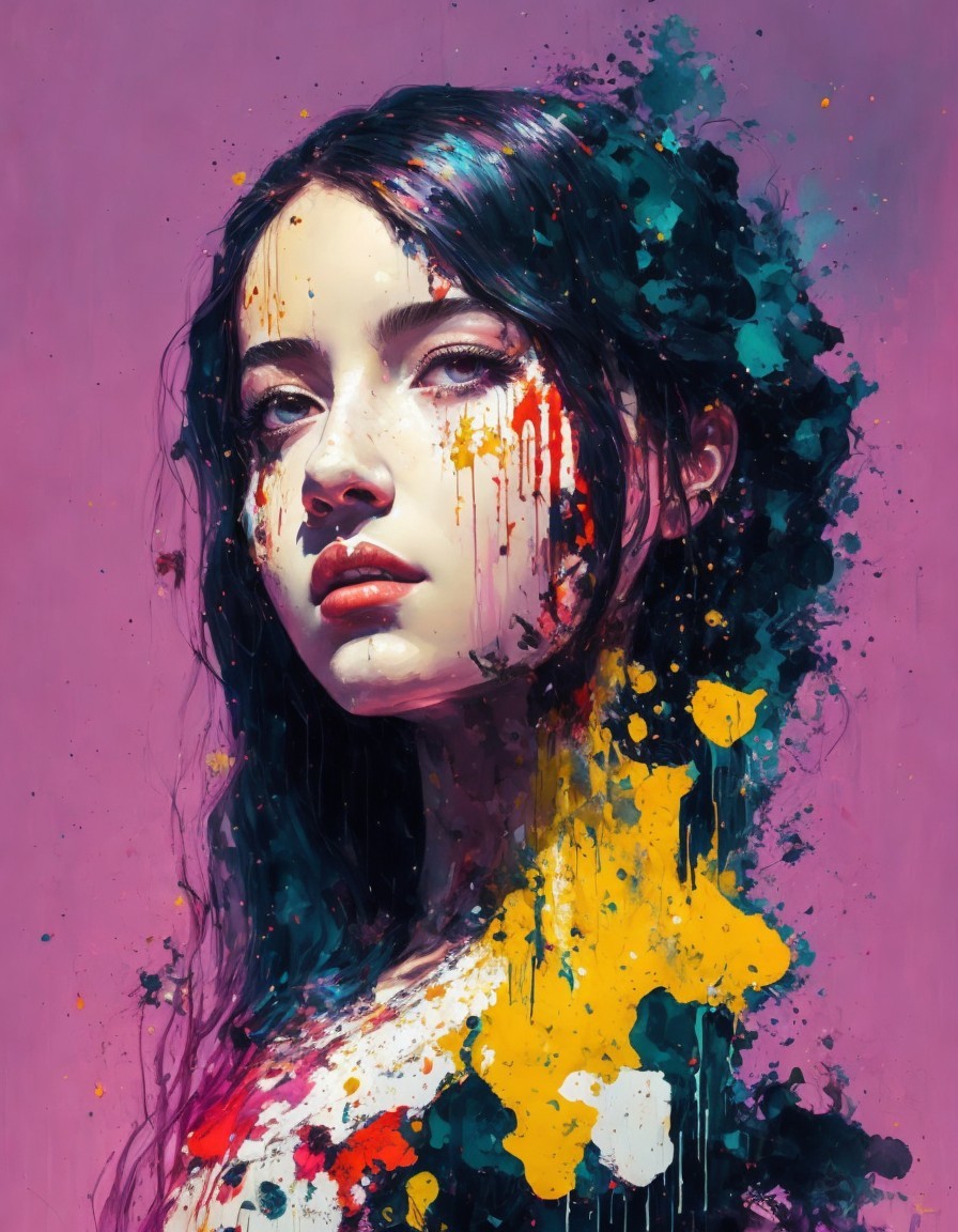 Prompt: young actress Ivana Baquero [Speedpaint with mixed brush strokes size by {Junji Ito; robert oxley! Ismail Inceoglu; Gazelli; M.W. Kaluta; El laberinto del fauno} paint splatter; paint drips; drip painting; a masterpiece; 8k resolution; trending on artstation; maximalist; uncanny; Holi] 151515