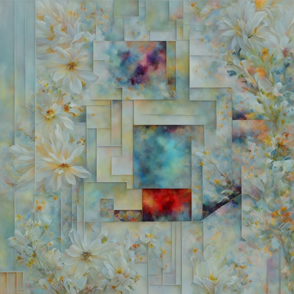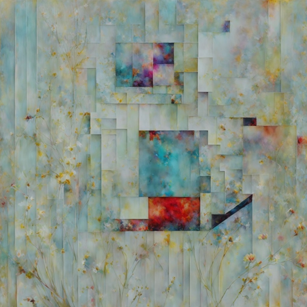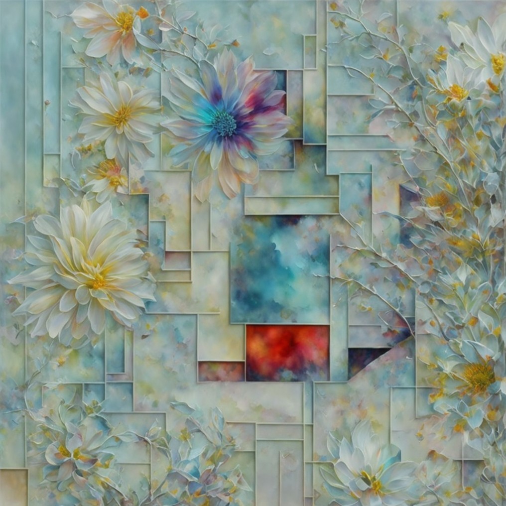 Complementary, contrasting, harmonious colouring, Graduated, contrasting tone, Foreground, background, middle ground composition, Flat, polished, smooth texture; dahlia in the center bottom left, glazes, washes, scumbling, dry brushing, stippling, hatching, splatters, Calm, content, peaceful, relaxed, tranquil atmosphere, Calm, content, peaceful, relaxed, tranquil form and shape, natural lighting, Gesturing, moving, resting, static pose, landscape, Plein air style.