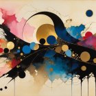The image features an abstract composition with colorful geometric shapes and a woman's face, surrounded by stylized trees, blending realism with vibrant, modern art elements.