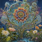 The image features an abstract design with swirling patterns in rich gold, teal, and deep blue, creating a mesmerizing fluidity and depth, resembling marbled textures.
