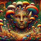 A majestic stag framed by vibrant, stylized trees, with mountains glowing in the background under a starry night sky.