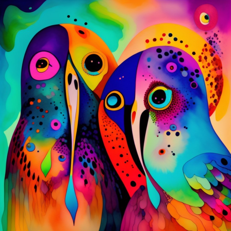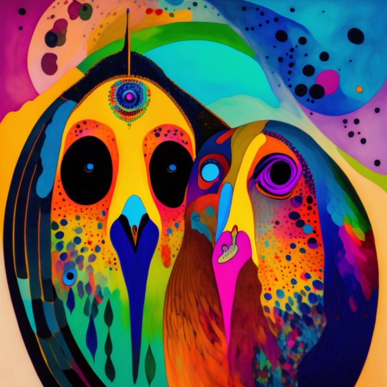 Colorful Stylized Owls on Vibrant Multicolored Background