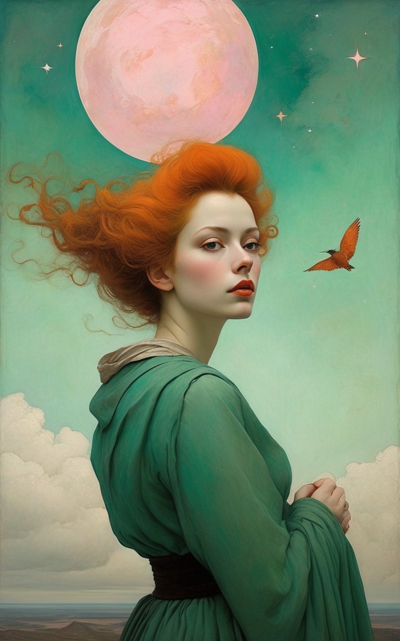 she is a shooting starand a fallen angelsatan loves hergods envy her. Egon Schiele, Jamie Heiden minimalist, Daniel Merriam whimsy.Colors:Sea green, orange (pale), pink (pale), Terra cotta