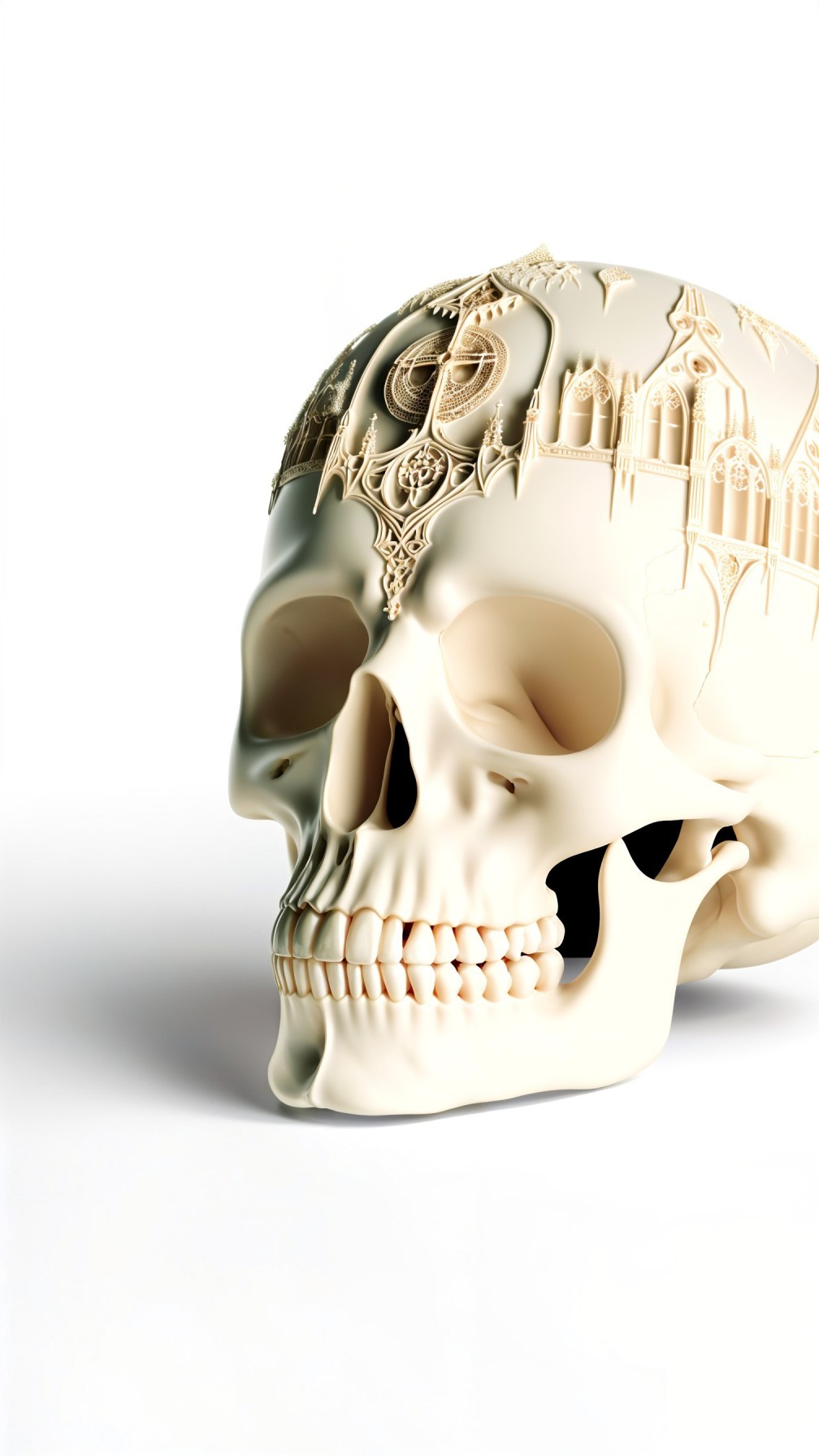 A beautifully crafted skull adorned with intricate floral patterns, showcasing a blend of art and anatomy. Its delicate details highlight craftsmanship and creativity in a striking design.