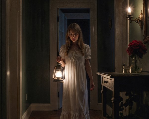 A mythical creature, resembling a mix of an elephant and a human, sits in a vast desert at sunset. Shadows stretch across the dunes, while birds fly against a backdrop of dramatic clouds.