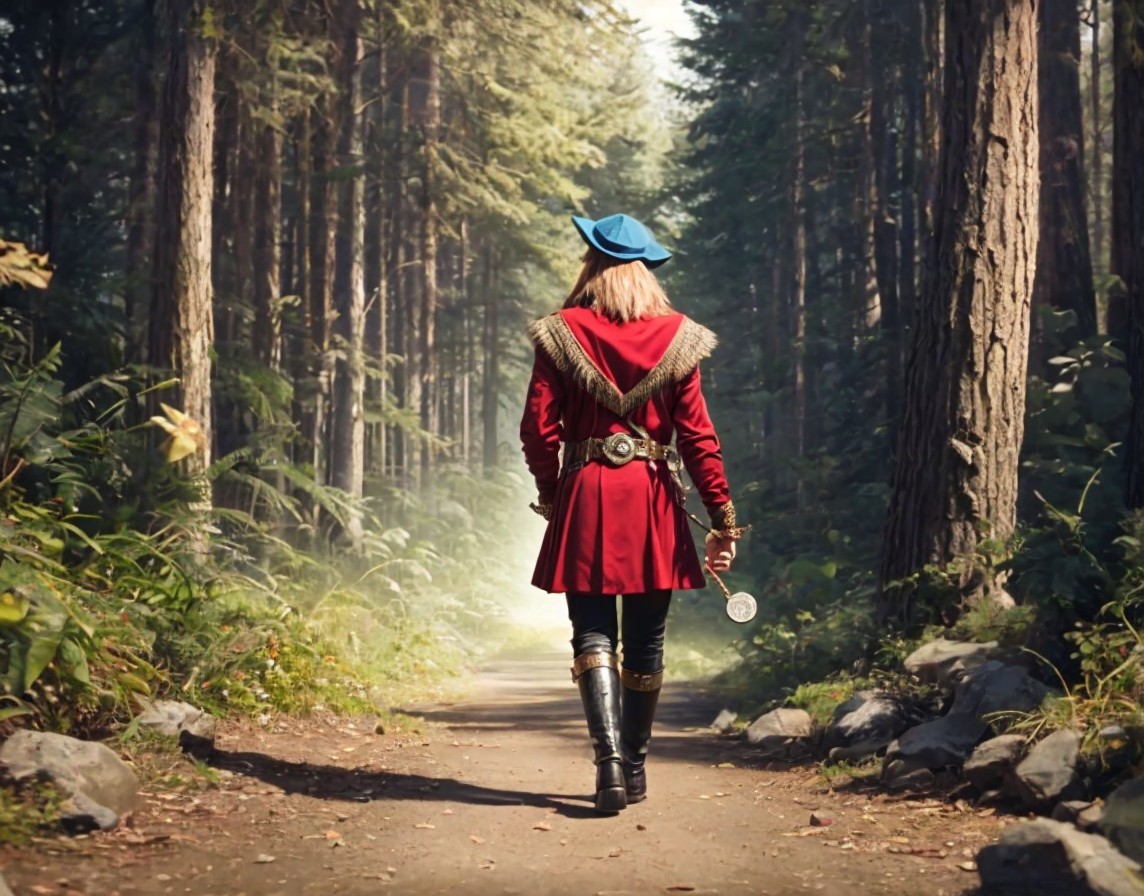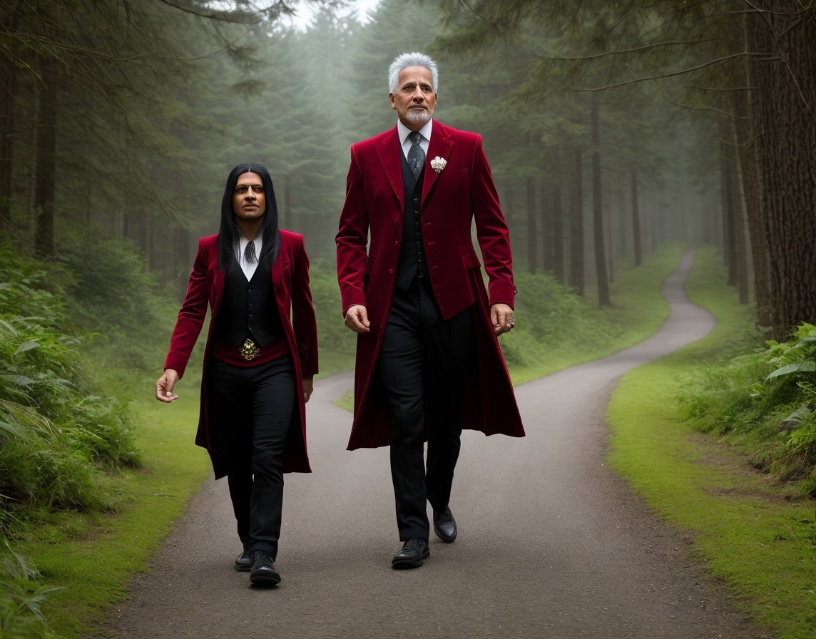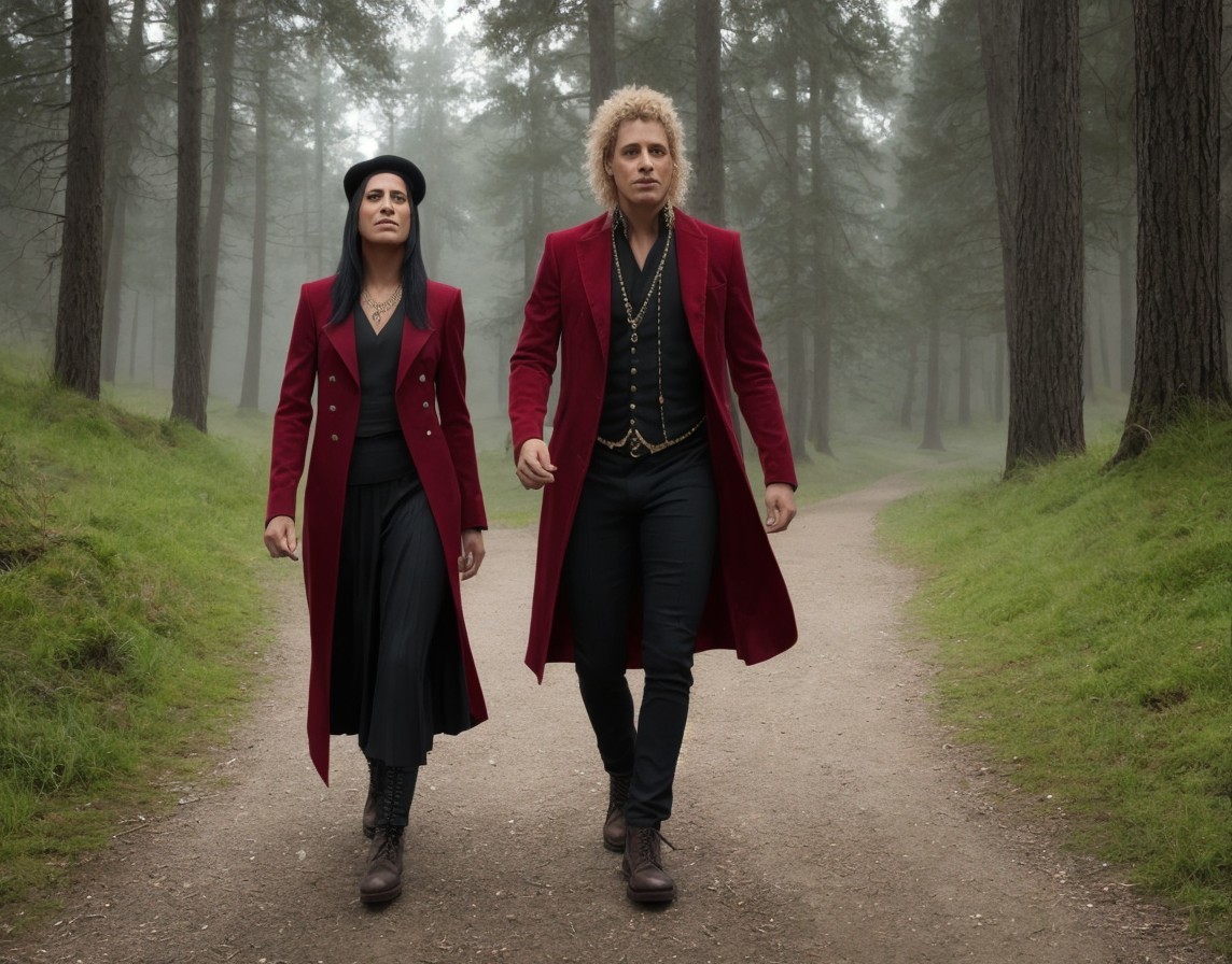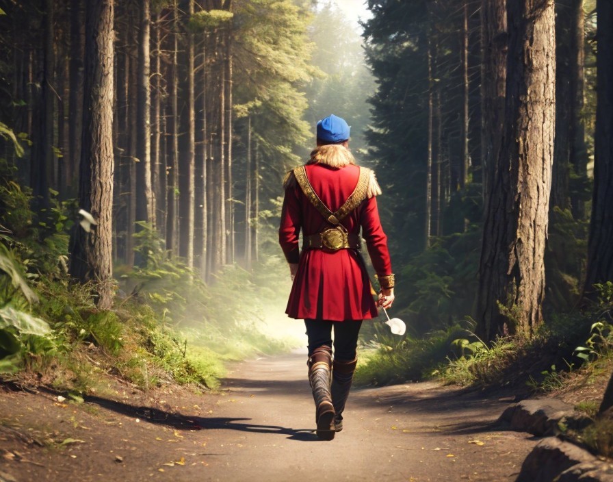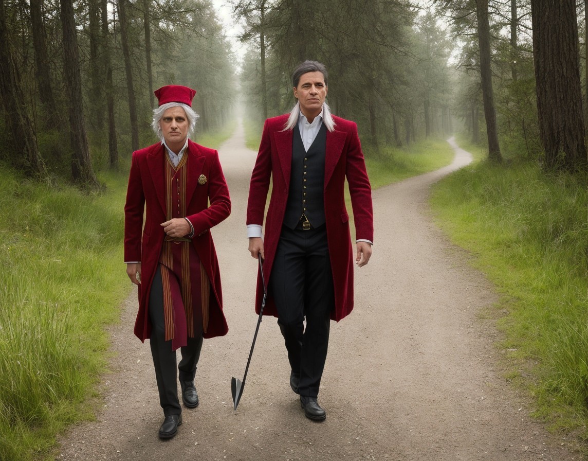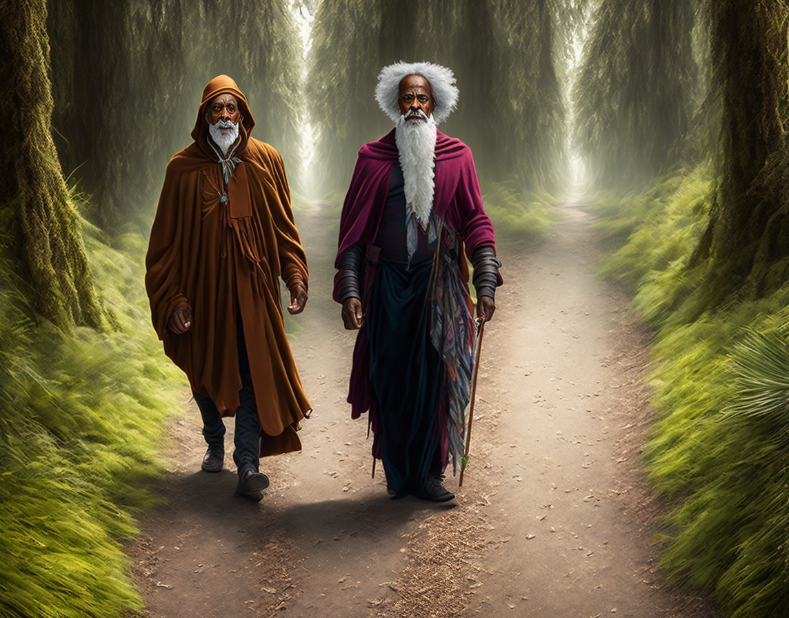 Men in Historical Robes Walking in Forest Path