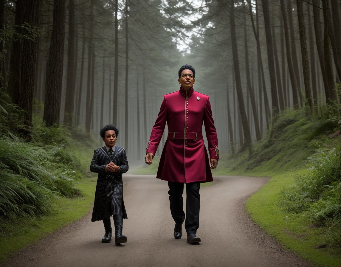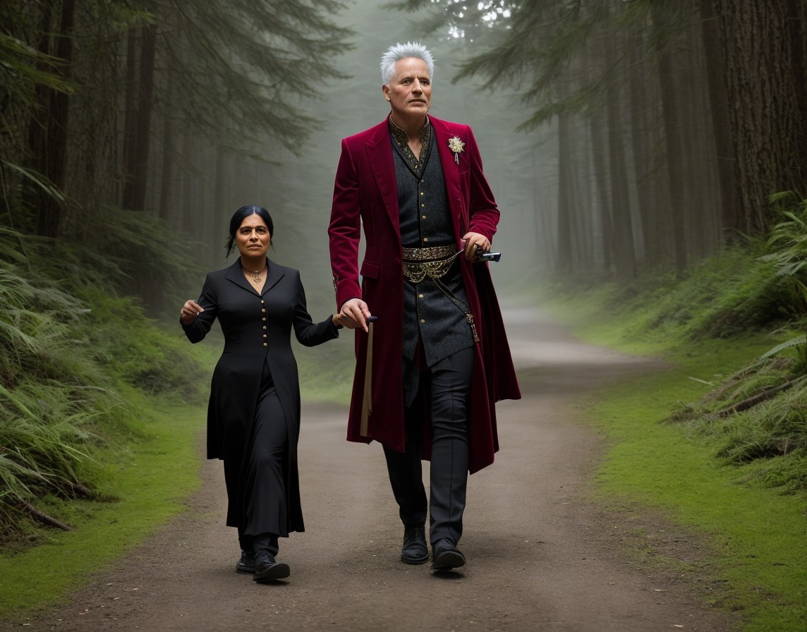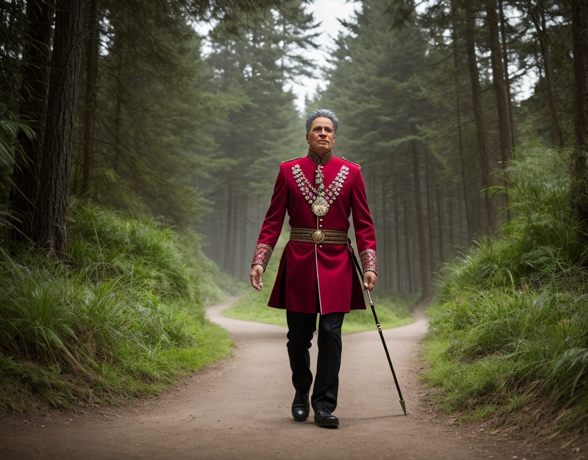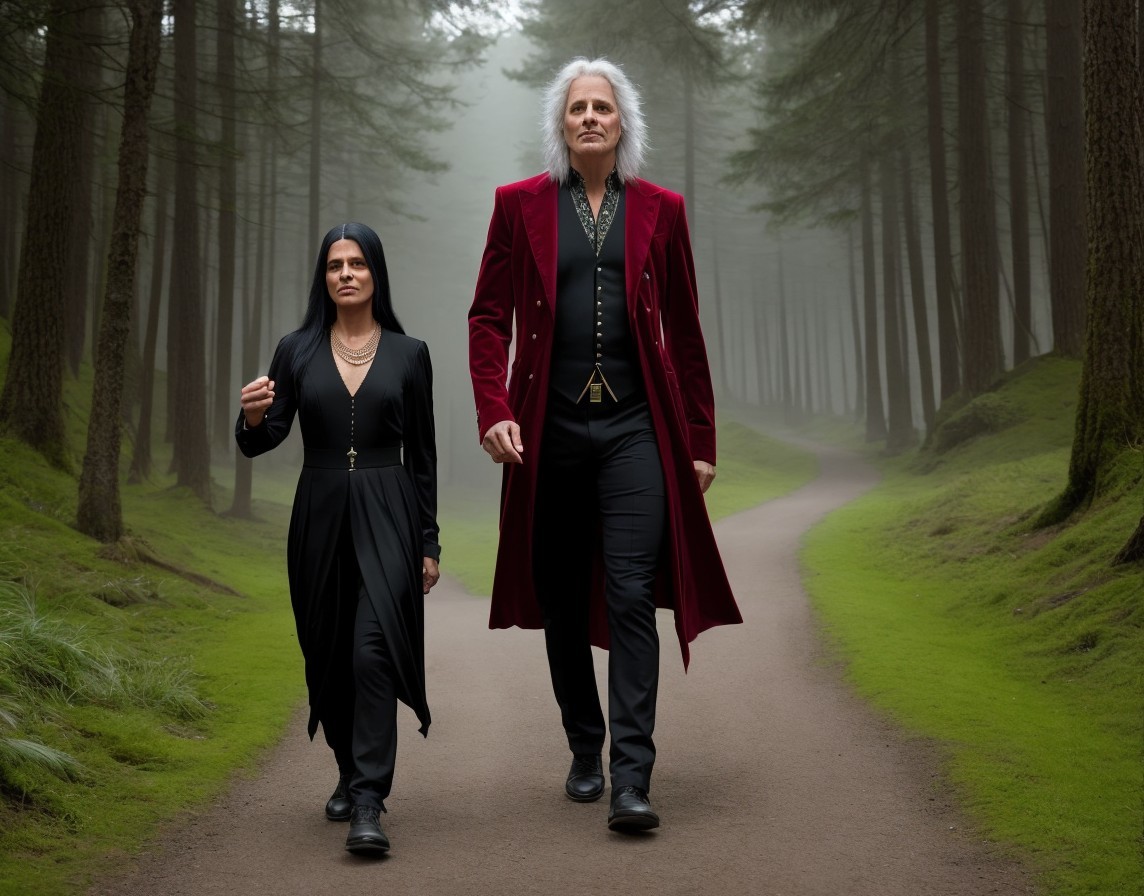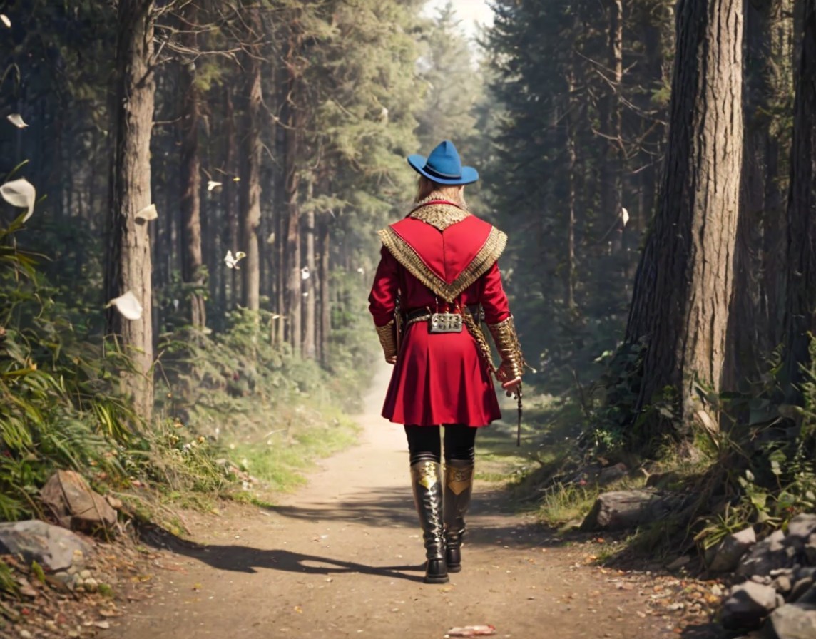 Men in Historical Robes Walking in Forest Path