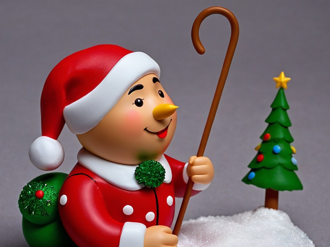 Cartoon Santa Claus with Candy Cane and Christmas Tree