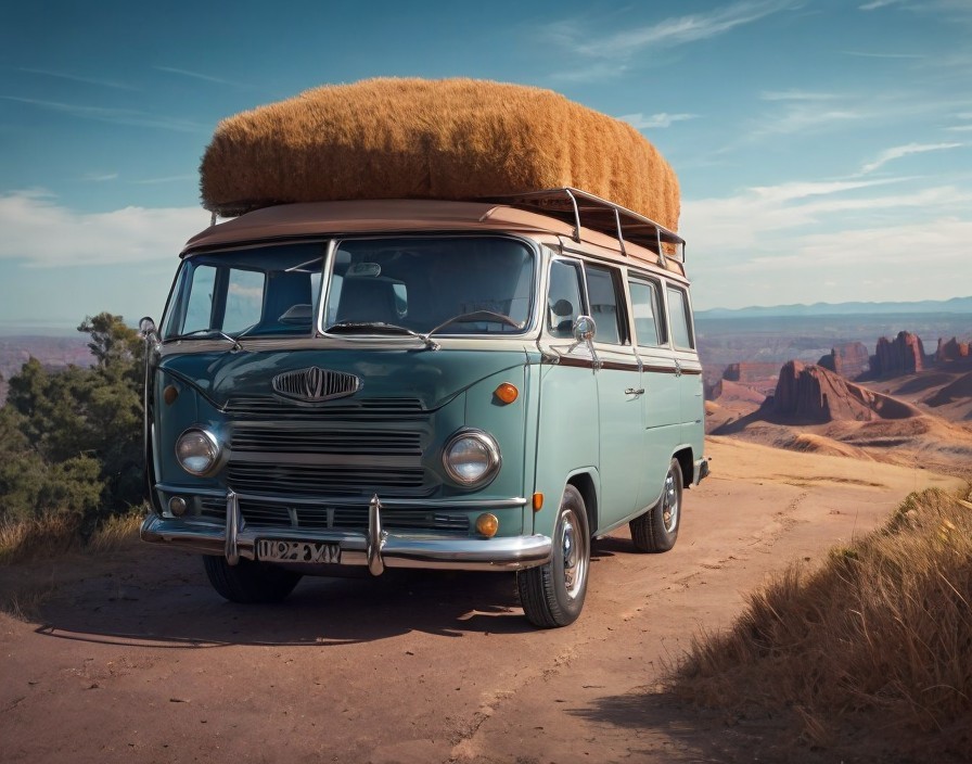 As always, here is the suggested description from the AI. "A whimsical painting of an ornate, double-decker caravan rolling through a flower-filled meadow under a sunny sky."