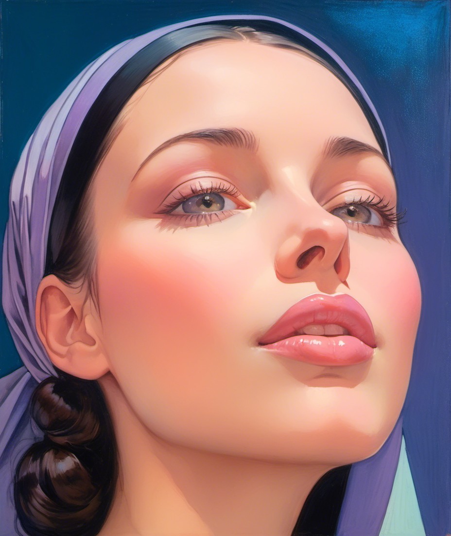 Prompt: Renaissance portrait, upper body portrait of beautiful temptress with headscarf, light reflections, lilac hues, Watercolor details, inkpunk 1.3, golden ratio, fractal line drawing with filament elements, outline illustration blended with realism and fractalization, watercolor and ink style with lineage details, zentangle method, comic book art 1.7, 1970s fantasy art merged with pop art,