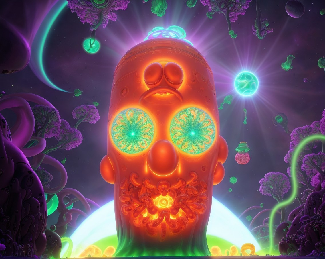 Ketamine methamphetamine Zoidberg in front of a green pulsating plasma portal emitting rays of bright light. Zoidberg with intricate psychedelic geometric patterns and mushrooms. DMT visuals. Zoidberg Zoidberg Zoidberg. Full on hallucination. Alex grey.