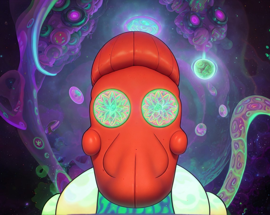 + Prompt:Zoidberg from Futurama, Ayahuasca DMT LSD MDMA Psilocybin