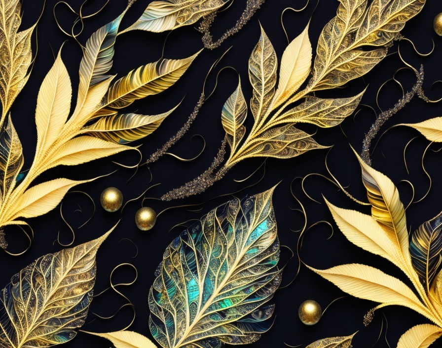 black complicated lineart, vivid colorful iridescent scales and shells, abstract, art nuovo, gold branches and leaves, artistic, detailed, intricate,