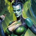 Vibrant Green-Skinned Character with Gothic Futuristic Style