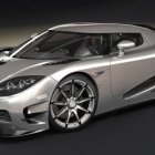 A sleek, Koenigsegg Trevita. Only two units were ever made, boasts a striking red and white color scheme. Its aerodynamic design features sharp lines, large wheels, and an aggressive stance, embodying high performance and luxury.