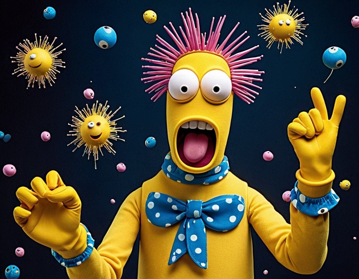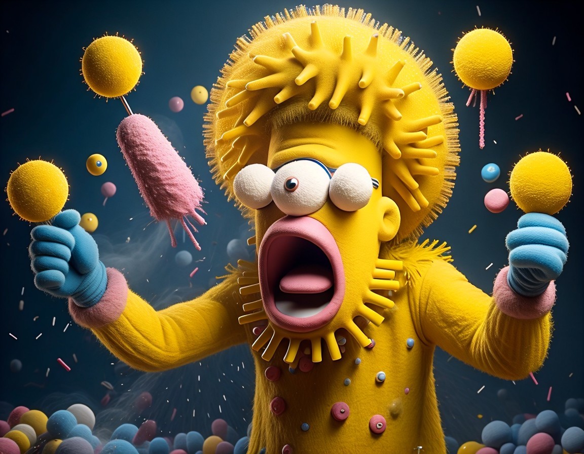 Vibrant Cartoon Creature Surrounded by Microorganisms