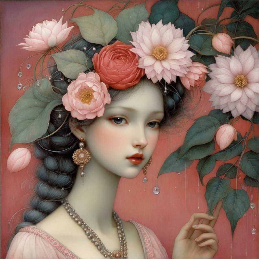 Fair-skinned fantasy elf with blonde braided hair in celestial setting