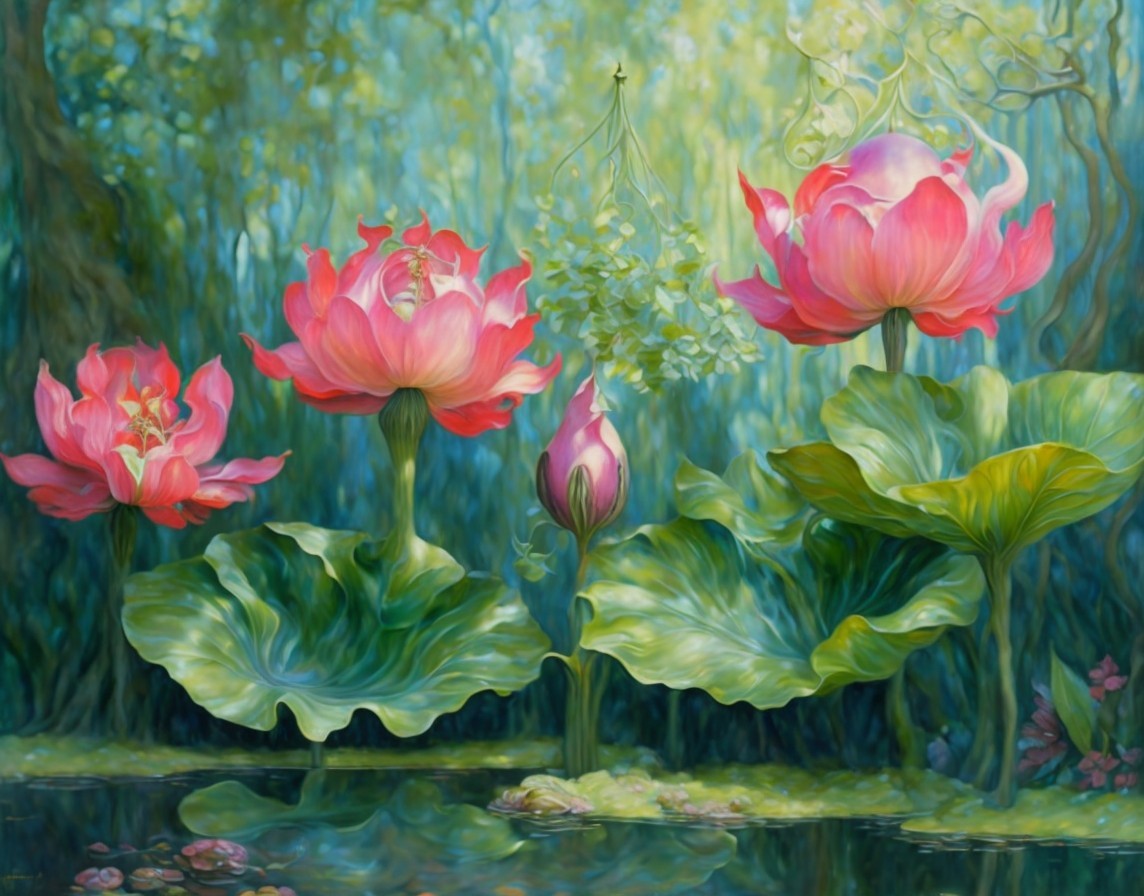 The artwork features two ethereal women surrounded by lush, intricate foliage and vibrant flowers. Mysterious and enchanting, the scene blends nature with fantasy, evoking a dreamlike atmosphere.