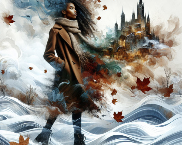 A graceful woman twirls in a flowing turquoise dress, surrounded by vibrant daisies. Her sun-kissed hair flows freely, embodying a sense of joy and carefree beauty in a bright, artistic scene.