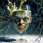 A vibrant, playful dog-guitar, surrounded by colorful, swirling patterns that exude energy and creativity, capturing a whimsical musical theme.