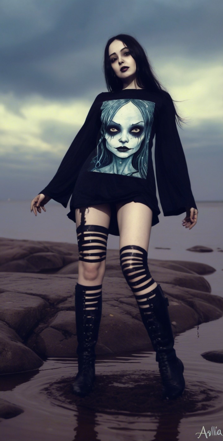 + Prompt:Watercolor and ink extrusion, watery paint .Enigmatic gothic rock girl, close-up, hues, Figurative, muted tones, bioluminescent, full body shot, aura, american gothic 1.7, stylization 1.3, cohesive fabric textures, hatching, stacked-up perspective, slightly exaggerated features, painted on velvet, inspired by the style of ho baron. Cel-shaded, Mixed media, stylized, weird details, whimsical, highly detailed, grungy, gold filaments, metallic sparkling, triadic color scheme red beige black, fantasy, liquid-pearlescent-plasma, HDR, VFX-inspired, high detail, 3D details, colorful hues, dreamlike, metallic paints, phantasmagorical surreal elements with intricate geometric patterns, delicate fine line work, rockette, zentangle method, warm beige, soft brown, vibrant artwork, detailed portrayal, capturing a light pensive moment amidst foggy plasma flares and spiritual surrealism. Stylized with the finesse of Stan Lee, the rum light setting enhances the rocky and foggy scene, accentuated by stacked lines and visible textures. The illustration is meticulously crafted with octane rendering, boasting intricately detailed elements and a warm pastel tones palette. Drawing inspiration from topographic graphics, it features fine lines and sgraffito aesthetics, reminiscent of Jackson Pollock's style, highly detailed textures applied using acrylic textile techniques. The piece exudes a sense of plasticity and depth, with a brightness of 1.9, highlighting white freckles and bright spots. Natural stylized lineage illustration, delicate coloring 1.3, parallax occlusion 1.2, octane render illustration, anisotropic filtering 1.7, raytraced shadows 1.8, divisionism, radiance,