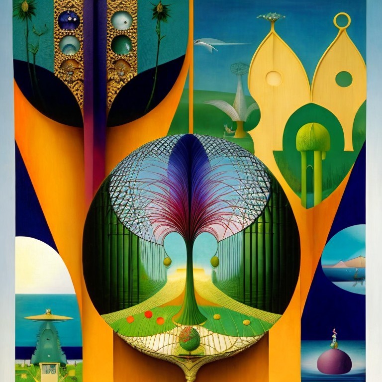 Prompt: THE WORLD BEFORE THE FLOOD. surreal in the style of Hieronymous Bosch, Naoto Hattori. Mesh fencing as patchwork. Minimilist, surrealism of Roberto Matta