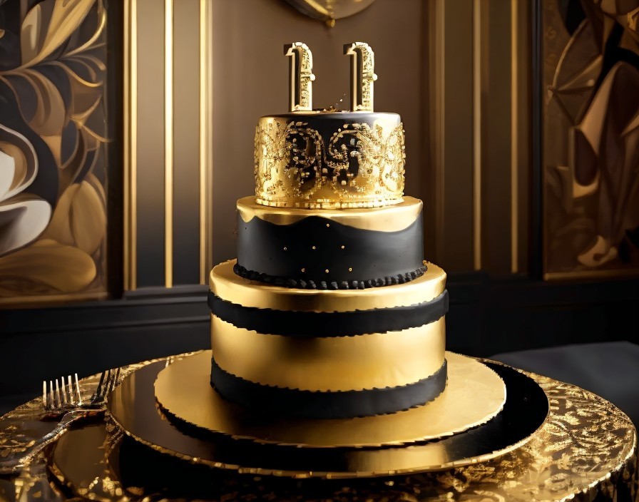 black and golden theme birthday decoration