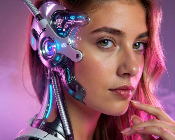 A woman in a red dress and sunglasses poses elegantly on a vibrant street at dusk, with soft focus lights in the background.