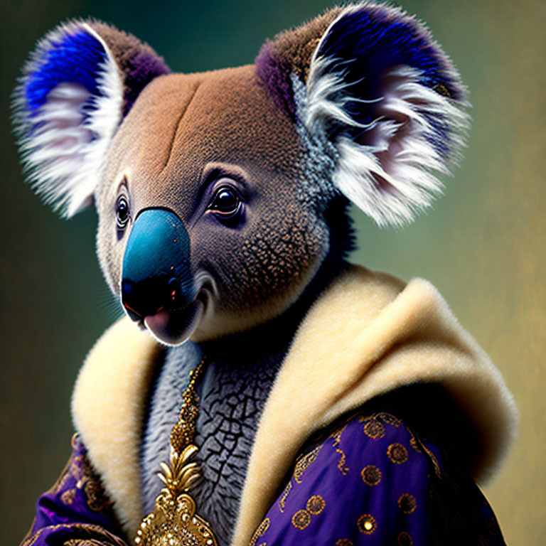 Regal Koala Portrait in Purple Cloak on Classic Background