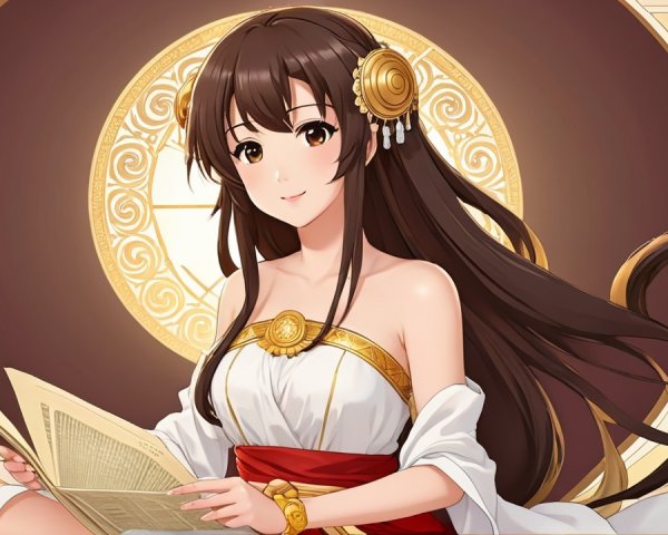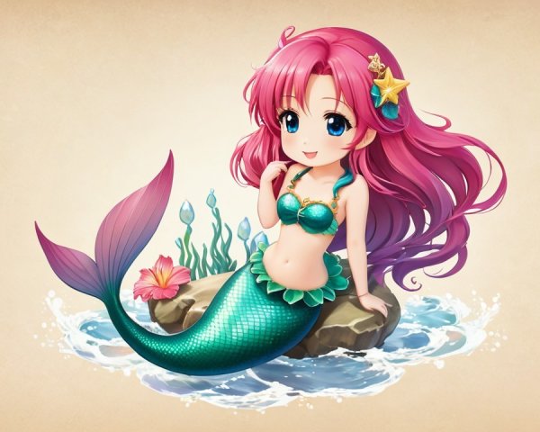 A charming anime girl dons a playful, colorful strapless swimsuit, featuring a fun, scrambled design. Her cheerful expression and vibrant hair add to her delightful and whimsical appearance.