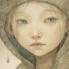 A serene, ethereal portrait featuring a young woman with delicate features, adorned with flowers and leaves. She has captivating eyes and a soft expression, embodying a mystical, nature-inspired essence.