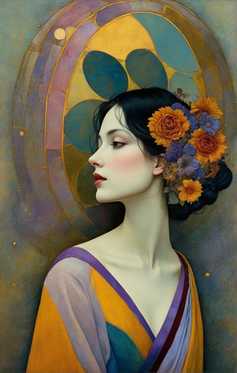 colors pale blue, gold, grey, burgundy, indigo