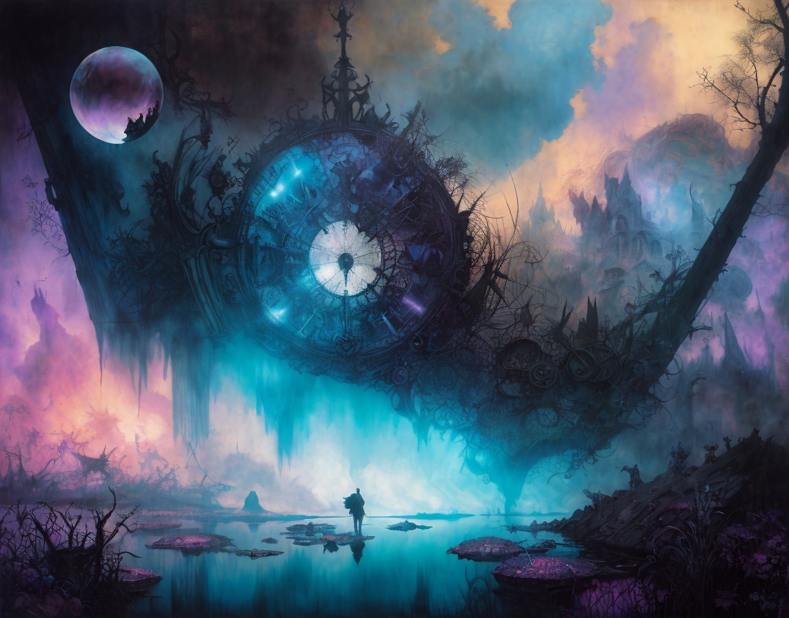 Prompt: "digital painting of a beautiful bioluminescent owl floating under the ocean water, schools of glittering fish, jellyfish, the background blends seamlessly into liquid cl,ouds of the milkyway, with the solar system full of dreams and possibilities floating around it, merging celestial and fantastical deep sea elements, nebulas swirl, milky way stretches, stars twinkle around it, conveying an imaginative dance, in a whimsical and fantastical Narration. Bright hues of orange, pink, gold and azure-blue, ultra-fine details. textures mimic cosmic and underwater phenomena, ultraviolet accents, illusion engine, dramatic lighting, Jean-Baptiste Monge style, digital painting elegant intricate 8k cinematic lighting very attractive ultra detailed crisp quality dynamic pose CAMERON GRAY Milo Manara Style Rick Spears Style Philip Alexius de László Action Packed Alessandro Puatasso imagination is running rampant and unleashed gravity free"