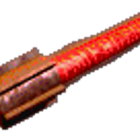 + Prompt:A close-up foto of a red and brown flare on a black background. The flare is lying horizontally, positioned in the center of the frame. The flare's barrel is predominantly red, with a metallic-looking brown cap and a darker brown end. The red portion of the pen appears textured, possibly indicating a rubberized or ridged surface, while the cap and end suggest a smoother, possibly metallic material. The lighting seems to be focused on the flare, emphasizing its shape and texture. The perspective is directly overhead, providing a clear view of the flare's details. The overall style is clean and simple, with a high level of contrast between the flare and the white backdrop, drawing attention to the flare.