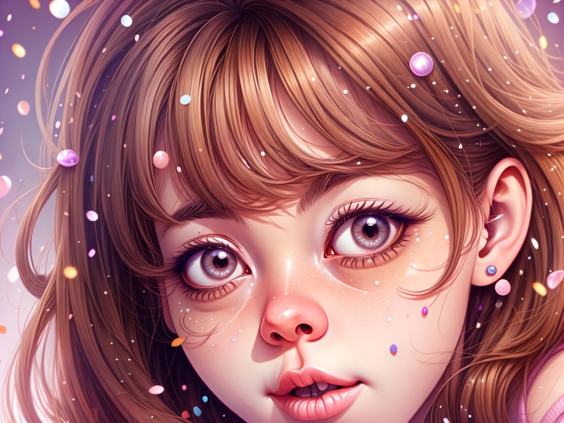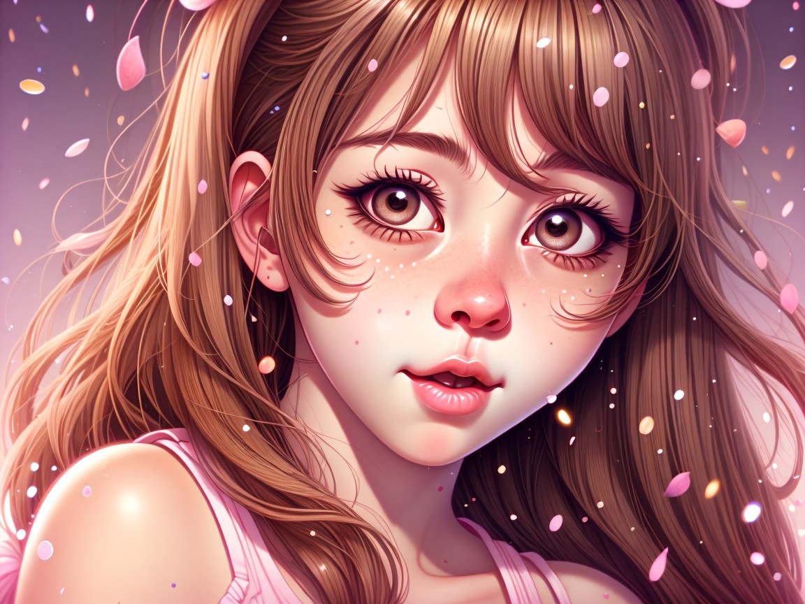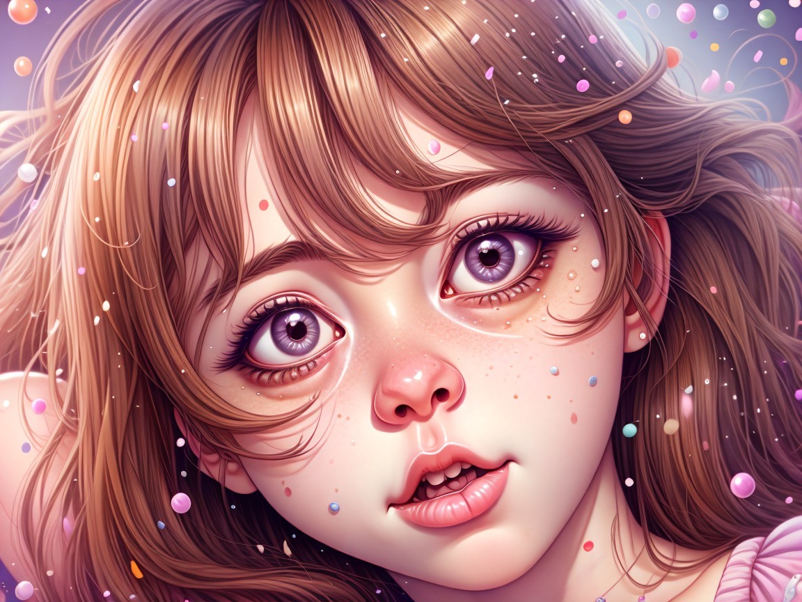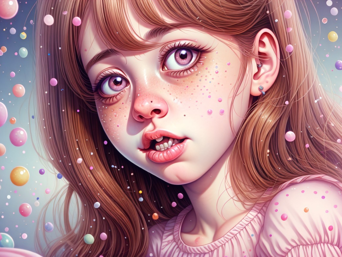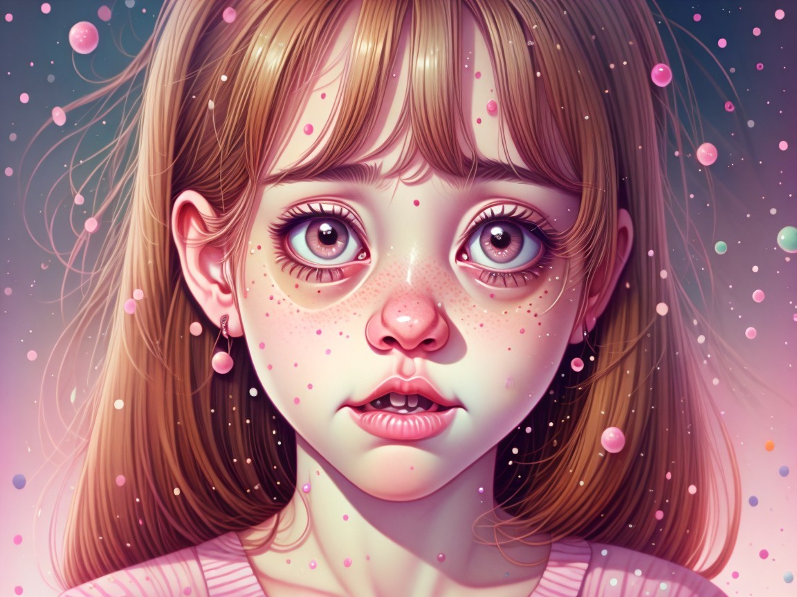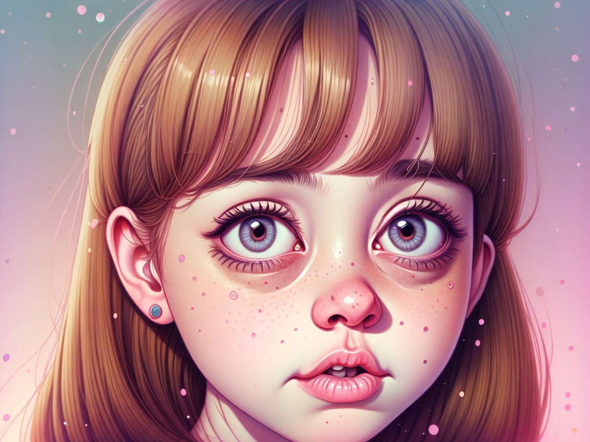 Prompt: Teenage girl from 1993 Carly Beth is short and skinny teenage girl with a little pixyish face, long straight brown hair with bangs, brown eyes and a tiny stub of a nose