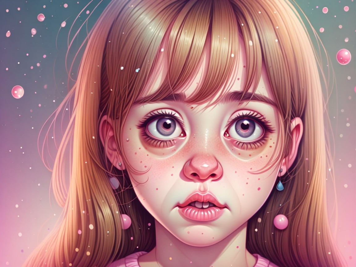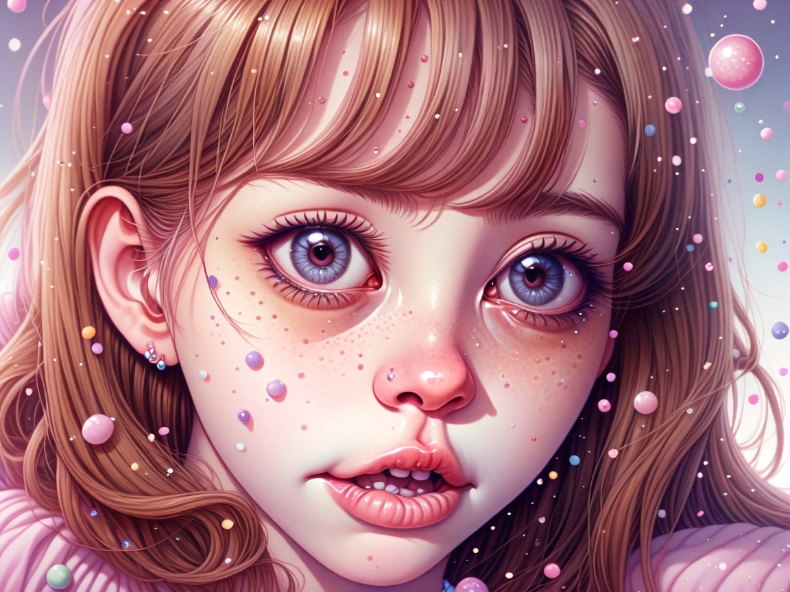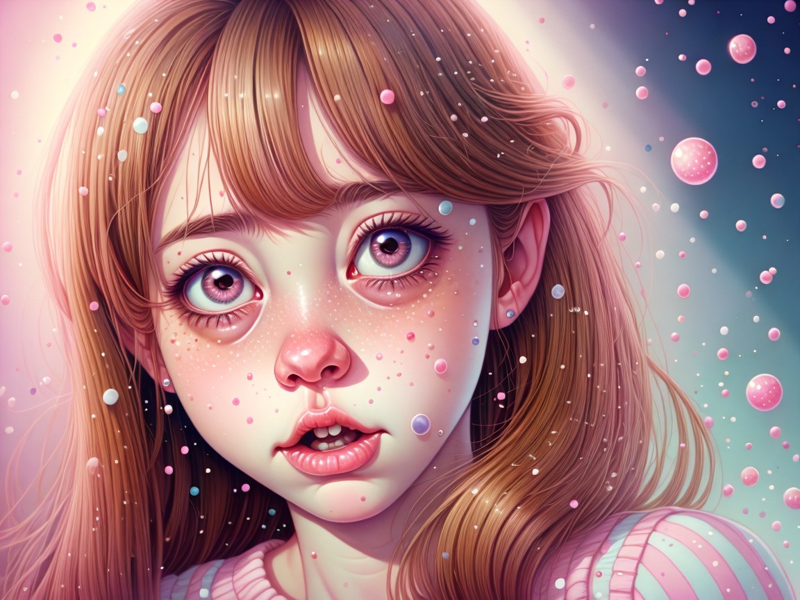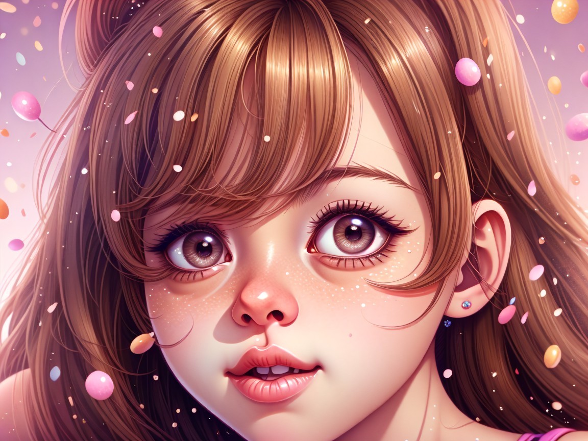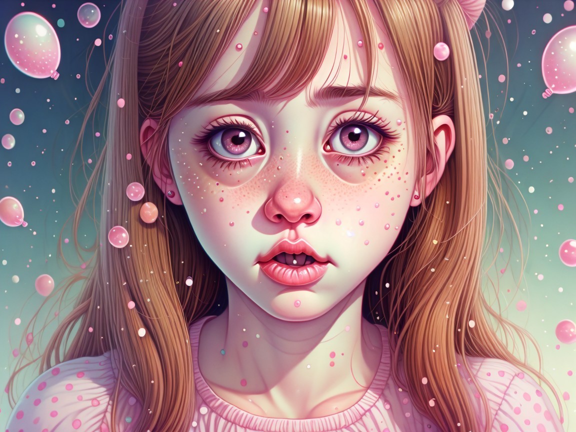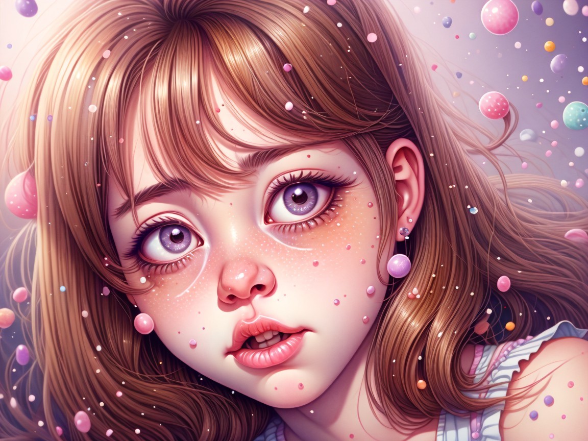 Prompt: Teenage girl from 1993 Carly Beth is short and skinny teenage girl with a little pixyish face, long straight brown hair with bangs, brown eyes and a tiny stub of a nose