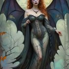 A young woman with wavy, golden hair wades through shallow water in a flowing, gray dress. Soft light and mist create a serene, ethereal atmosphere around her.