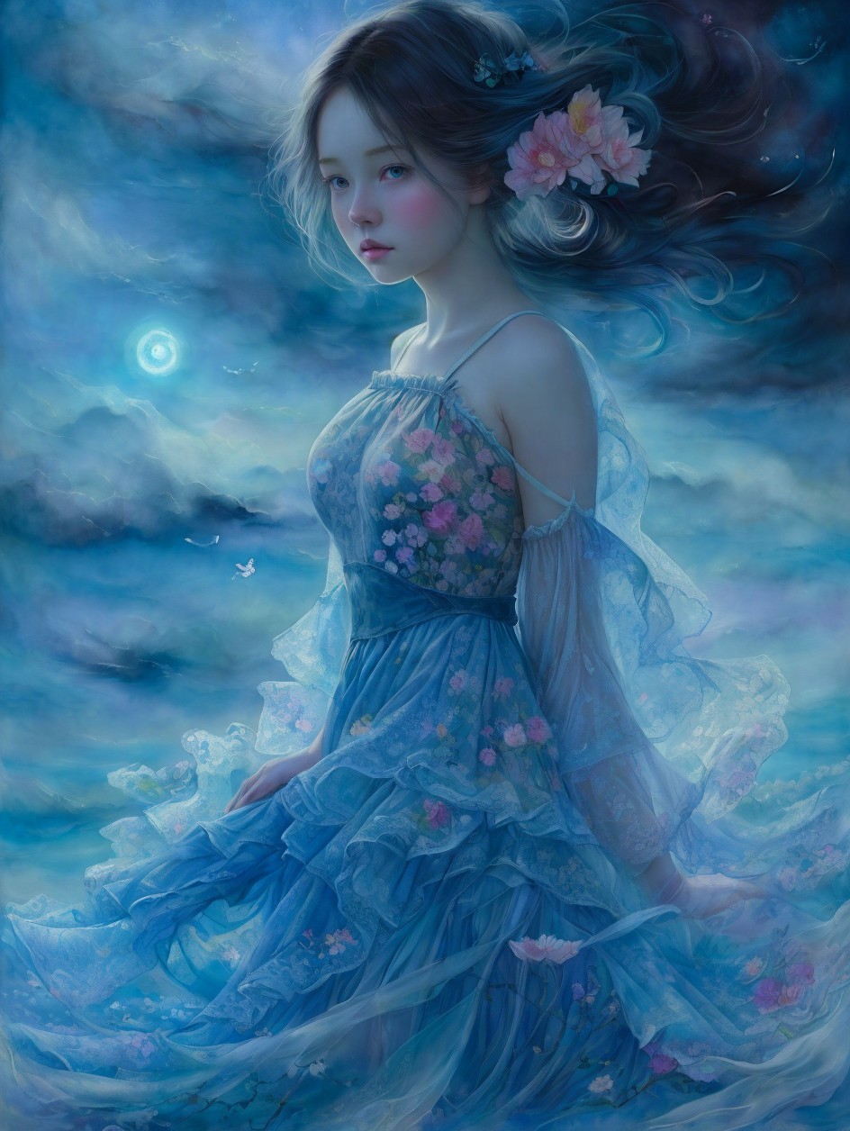 A very pretty dreamy glowing girl art by Lin Fengmian, Anna dittmann, Justin Gaffrey, John Lowrie Morrison, Patty Maher, John Ruskin, Chris Friel, van Gogh, Valerie Hegarty, endre penovac. 3d, soft colors watercolors and ink, beautiful, fantastic view, extremely detailed, intricate, best quality, highest definition, rich colours.
