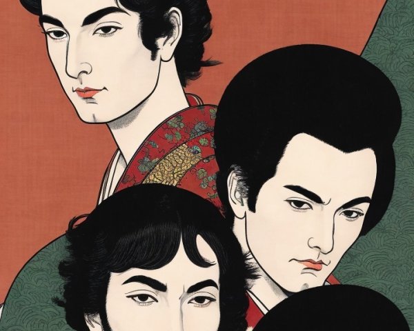 A woman in a black dress adorns a green background, showcasing a striking pose. She has long, dark hair and a floral accent, complemented by jewelry, while a floating hairstyle adds a surreal touch.