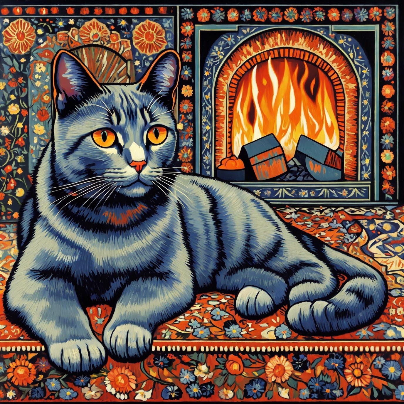Cozy fireplace kitty
