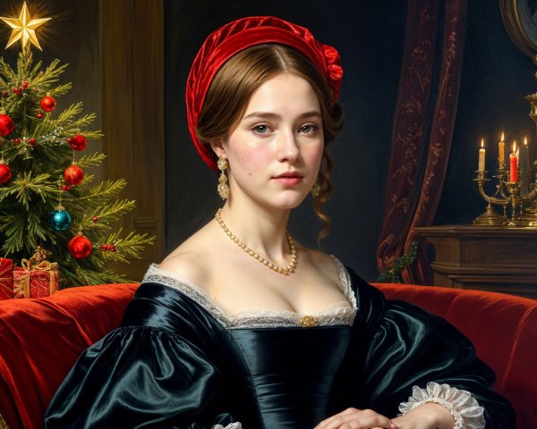 A man in a formal vest and white shirt sits at a desk, writing in a book. Behind him is a scenic landscape with rolling hills and a castle, creating a blend of elegance and contemplation.