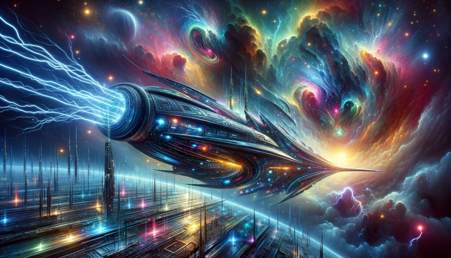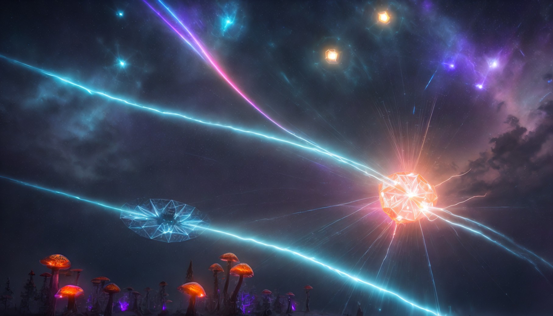 Prompt: "a futuristic spaceship soaring through the cosmos. Envision sleek, metallic surfaces reflecting vibrant hues of cosmic nebulas. Incorporate intricate geometric patterns and luminous propulsion systems, brain scan, blueprints, A great Tesla coil made of crystal lightning comes out of the thunderstorm. Dark, foreboding AND filled with and powered by bioluminescent psychedelic mushrooms, digital oil painting, putting energy into the sky and ground at a location known for unexplained aerial and space phenomenon, UFO, UAP, visitors, aliens, a photorealistic digital oil painting of millions of colors by Randy Gallegos, big sky lightning, highly detailed vector art, Taking a lot of LSD in 2024, a beautiful artwork illustration, beautiful wallpaper, digital oil painting of millions of colors by Tim Burton, brain schematics, psychological diagrams, human energy paths, psychological assessment, brain scan, schematic evaluation, blueprints, Taking a lot of LSD in 2024,"