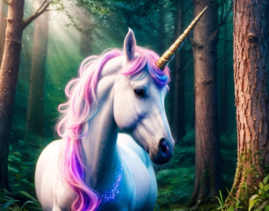 Prompt: "a unicorn is rare, magical, a force of nature, beautiful, graceful, playful, a wild thing with its own rules"; exquisite watercolor, volumetric light, masterpiece, extremely detailed, fantastic view, high detail render, subtle patterns, vibrant colors, faerie lights, award winning, magical forest setting, masculine